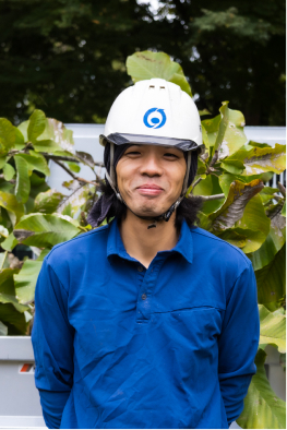 就職活動をしていたところ雅敍造園の求人と出会い、街路樹や河川・公園など身近な公共物に関する仕事内容にも興味を持ったため応募しました。
